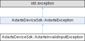 Inheritance diagram for AstarteDeviceSdk::AstarteInvalidInputException:Public Member Functions | |