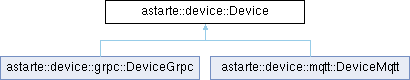 Inheritance diagram for astarte::device::Device:Public Member Functions | |