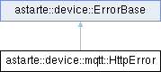 Inheritance diagram for astarte::device::mqtt::HttpError:Public Member Functions | |