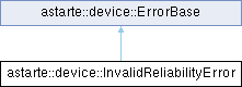 Inheritance diagram for astarte::device::InvalidReliabilityError:Public Member Functions | |
