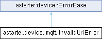 Inheritance diagram for astarte::device::mqtt::InvalidUrlError:Public Member Functions | |